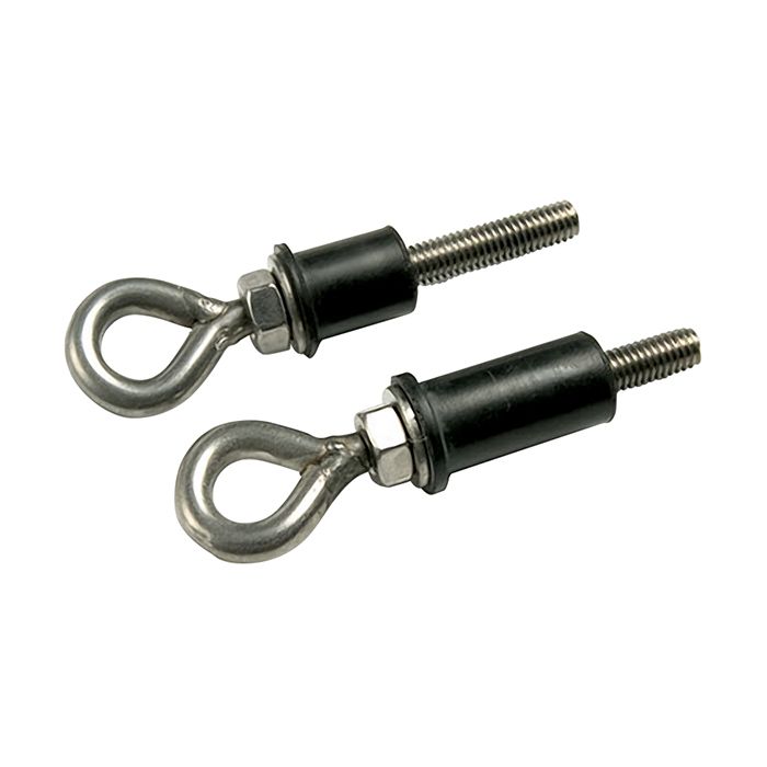 •To install: - drill a 13mm diameter by 40mm deep hole. - insert the cladding bolt and rotate the eye, this causes the rubber shield to expand and clamp behind the substrate. - position the cladding bolt at 10m intervals or where the nets turns a corner. - Attach the wire rope to the cladding bolt.