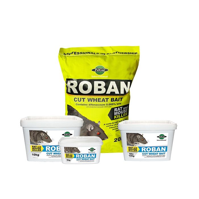 Roban is a highly palatable bait in both whole wheat and cut wheat formulations. With built-in attractants and mould inhibitors, the difenacoum based products provide outstanding effectiveness.